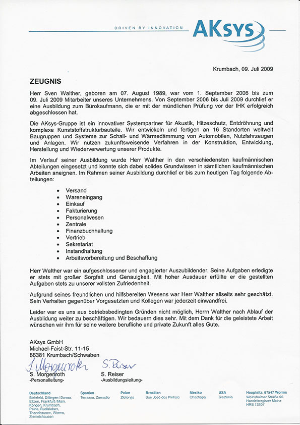 - Ausbildung zum Bürokaufmann bei Aksys GmbH in Krumbach bis 2009