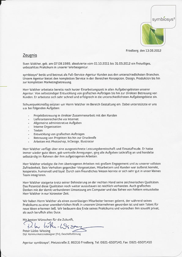 - Praktikum in der Werbeagentur symbiosys2 in Friedberg bis 2012